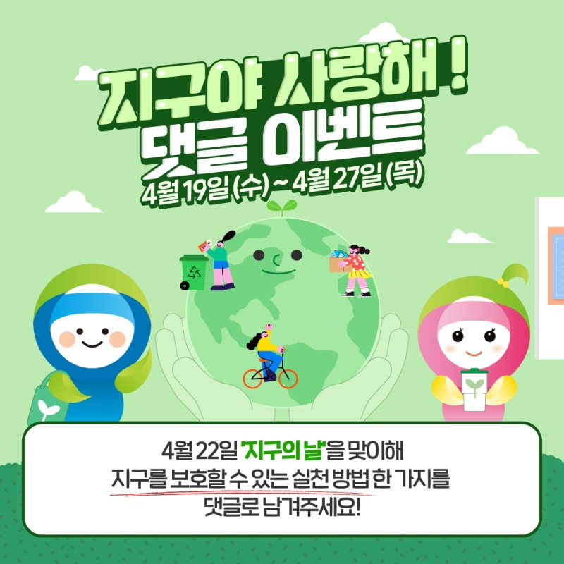 지구야 사랑해! 응원 메시지와 함께 지구를 보호할수있는 실천방법 한가지를 댓글로 남기면