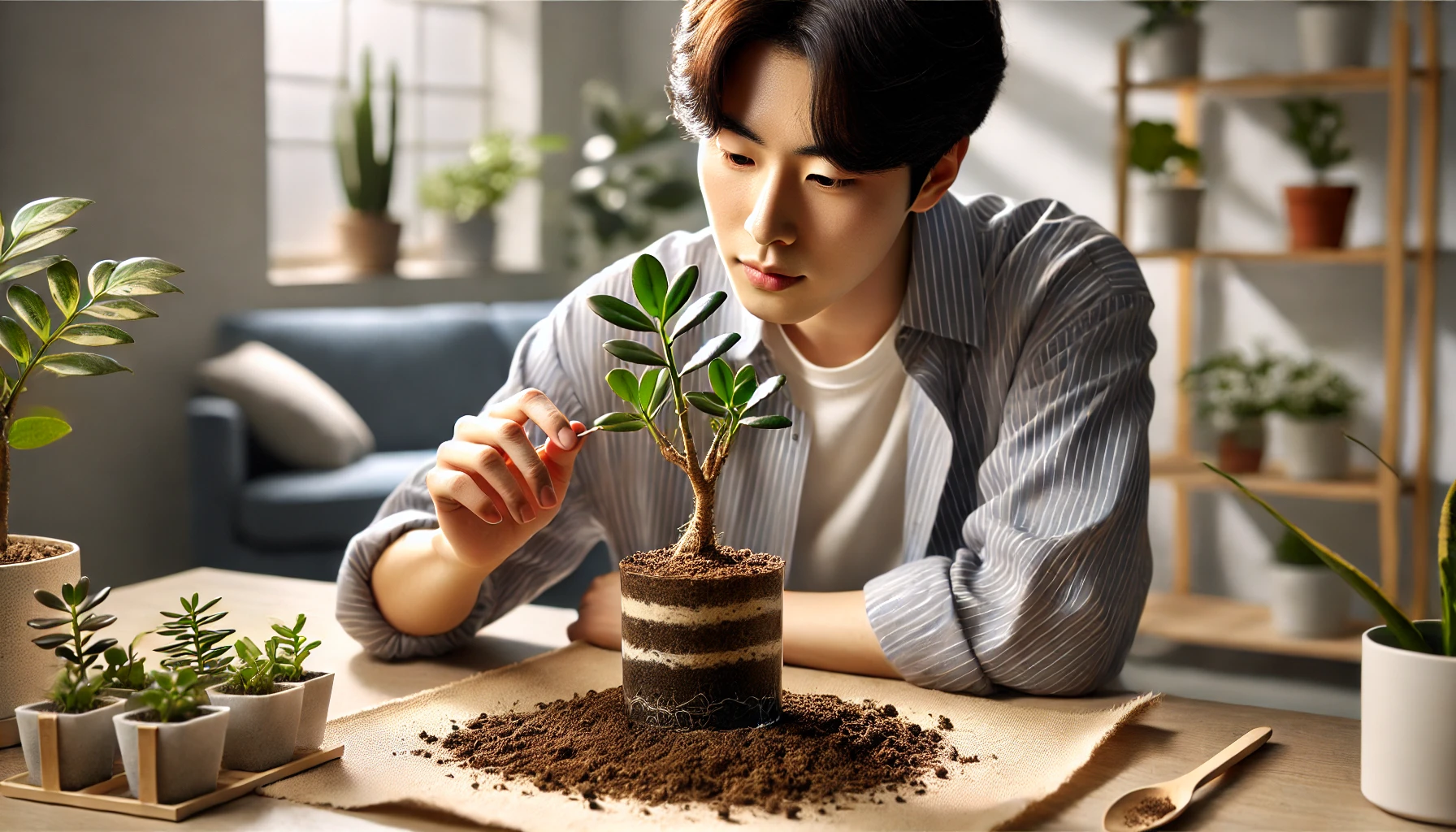 젓가락을 찔러 넣어 흙이 촉촉한지 확인해보세요.